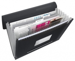 Harmonika irattartó, A4, PP, 13 rekeszes, antibakteriális, RAPESCO "SupaFile", fekete