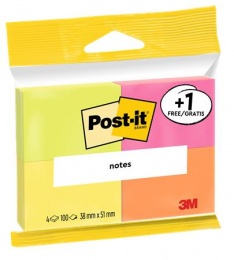 Öntapadó jegyzettömb, 38x51 mm, 3x100 lap, 3M POSTIT, kanári sárga