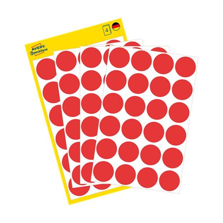 Etikett, 18 mm, kör, AVERY ZWECKFORM, piros, 96 etikett/csomag