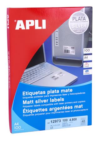 Etikett, 45,7x21,2 mm, poliészter, időjárásálló, kerekített sarkú, APLI, ezüst, 4800 etikett/csomag
