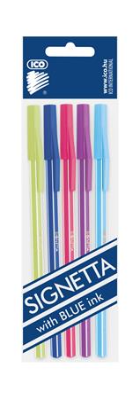 Golyóstoll készlet, 0,7 mm, kupakos, 5 különböző testszín, ICO "Signetta Mix", kék