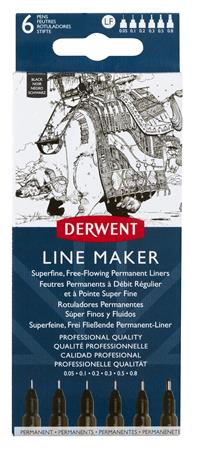 Tűfilc szett, 0,05/0,1/0,2/ 0,3/0,5/0,8 mm, DERWENT "Line Marker", fekete