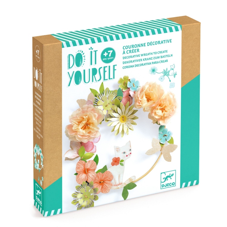 A lakás vagy szoba különleges dísze lehet ez a saját készítésű virágkoszorú. A komplett kreatív készlet segítségével a gyerekek elsajátíthatják a selyempapír készítésének technikáját. A kis kiegészítőkkel együtt vidám tavaszi-nyári ajtódísz koszorú készíthető, melyen még egy kedves cicus is "jól érzi magát".