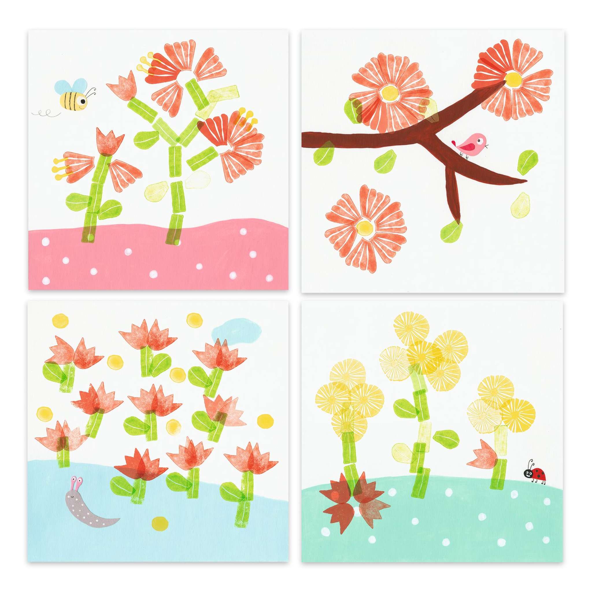 Virág és természet témájú nyomdázókészlet, ahol a gyermek szabadon díszíti a kártyákat a kedves nyomdázó illusztrációkkal. Fokozatosan befesti a nyomdázókat, lenyomatokat készít, hogy animálja a magyarázó füzetben javasolt dekorációkat. A gyermek szórakoztatóan változtathatja a kombinációkat, szabad utat engedve képzeletének. Mindig más és más az, amit a képre nyomdáz és így a vázlatok életre kelnek!