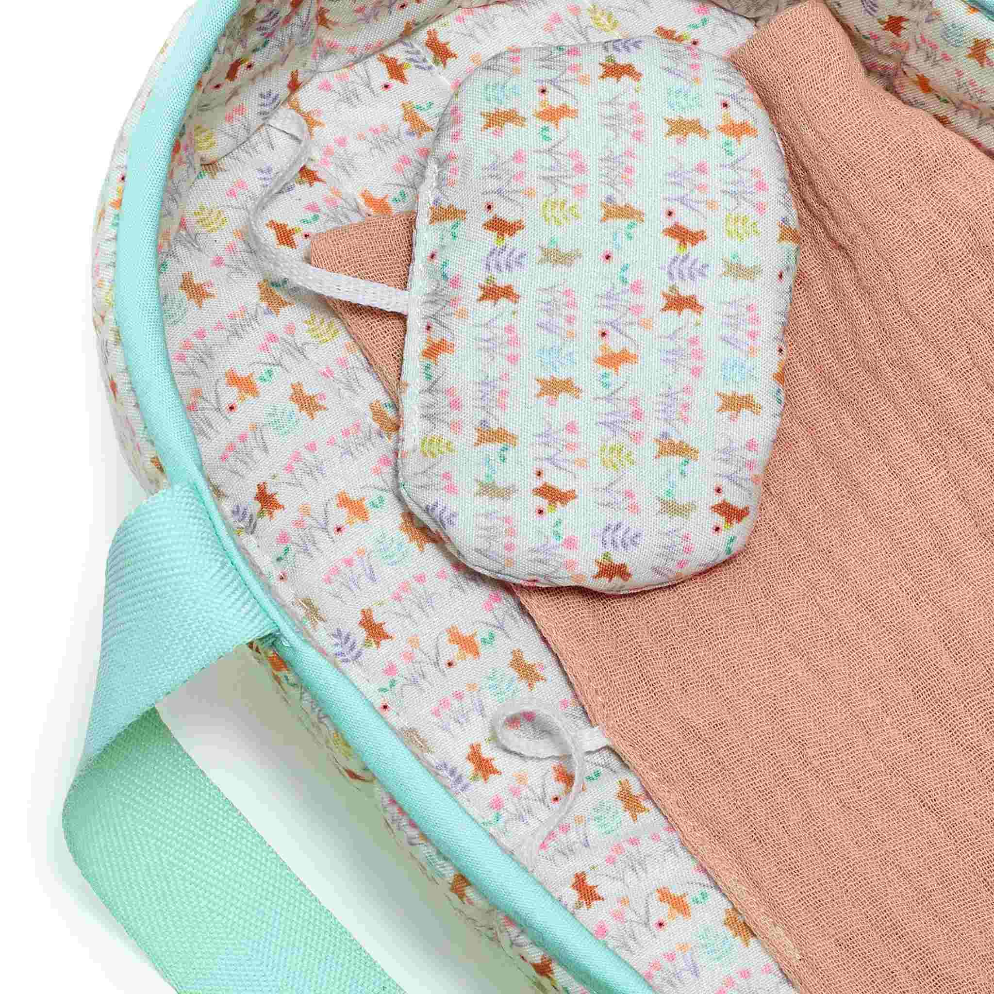 - A párna és a takaró szalaggal rögzített a mózeskosárhoz.
