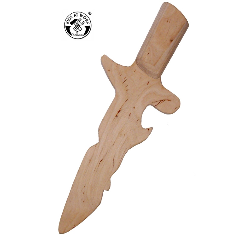 A nyírfa lemezből, a csomagolásban lévő sablon segítségével megrajzolható és utána lombfűrésszel kivágható a tőr és az alkatrészei. Az elkészítéshez szükséged lehet lombfűrészre, fúrógépre, fúrószálra, párhuzam szorítóra, mini csipeszre, faragasztóra, ráspolyra, fareszelőre, csiszolópapírra.
