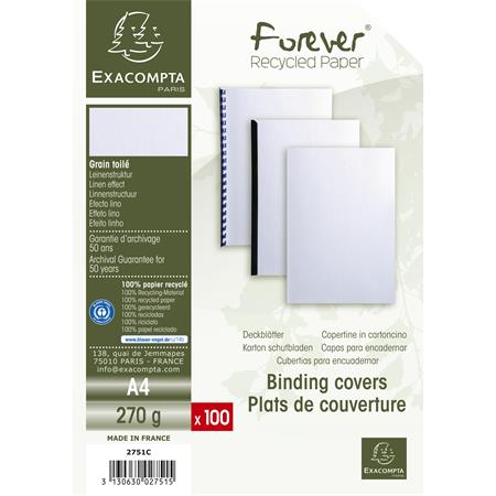 A 100 darabos, fehér színű A4-es, vászonmintás kötészeti borítócsomag ideális megoldás igényes dokumentumok esztétikus és tartós bekötéséhez.-100 darabos kiszerelés-A4-es méret-fehér színű kivitel-újrahasznosított, merev karton alapanyag-vászonmintás felület-spirálozott, műanyag- vagy fémgerinces, illetve tűzött kötéshez is alkalmas-Angel Blue minősítéssel rendelkezik-környezetbarát, minőségi újrahasznosított termék