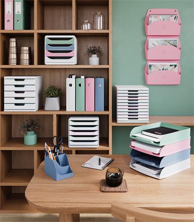 A csúcsminőségű dizájn találkozik a legmagasabb szintű ökológiai felelősségvállalással az újrahasznosított hulladékból készült fehér műanyaggal.-ergonomikus, falra szerelhető -alkalmas minden anyag, dokumentum, katalógus, szórólap vagy papír alapú információ tárolására vagy kiállítására-moduláris felépítésének köszönhetően a kívánt számú rekeszt könnyedén összepattinthatja-címketartó mellékelve-méret: 382x289x72 mm