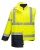 Kiváló ár-érték arányt képviselő 5 az 1-ben jól láthatósági munkavédelmi kabát (kontraszt színekkel). A külső kabáton praktikus tárolózsebek, patentos, állítható mandzsetta és rejtett kapucni található. A ragasztott varratok vízállóságot biztosítanak. A belső kabát levehető, fluoreszkáló polár ujjakkal, két tárolózsebbel és sötét színű kontraszt panelekkel rendelkezik. A kétutas cipzár a gyors és könnyű hozzáférést segíti. A kabát öt különböző funkcióban, akár egész évben viselhető. EN 20471 szabvány szerinti 50 mosásra minősítve.