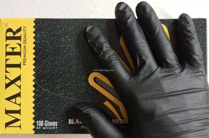 Védőkesztyű, egyszer használatos, nitril, M méret, 100 db, púder nélküli, fekete